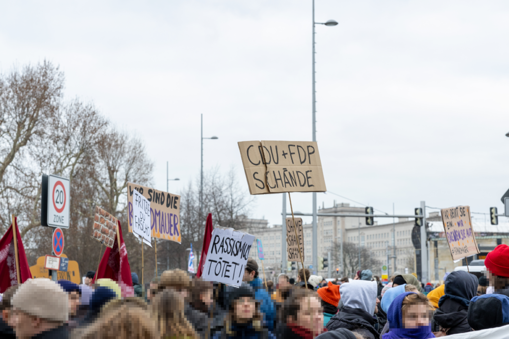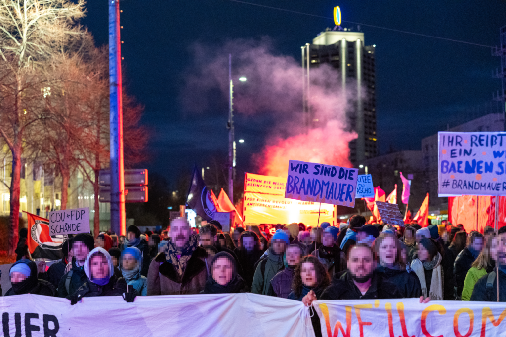 „Hoch mit der Brandmauer, nieder mit der CDU“ „01.02.25“