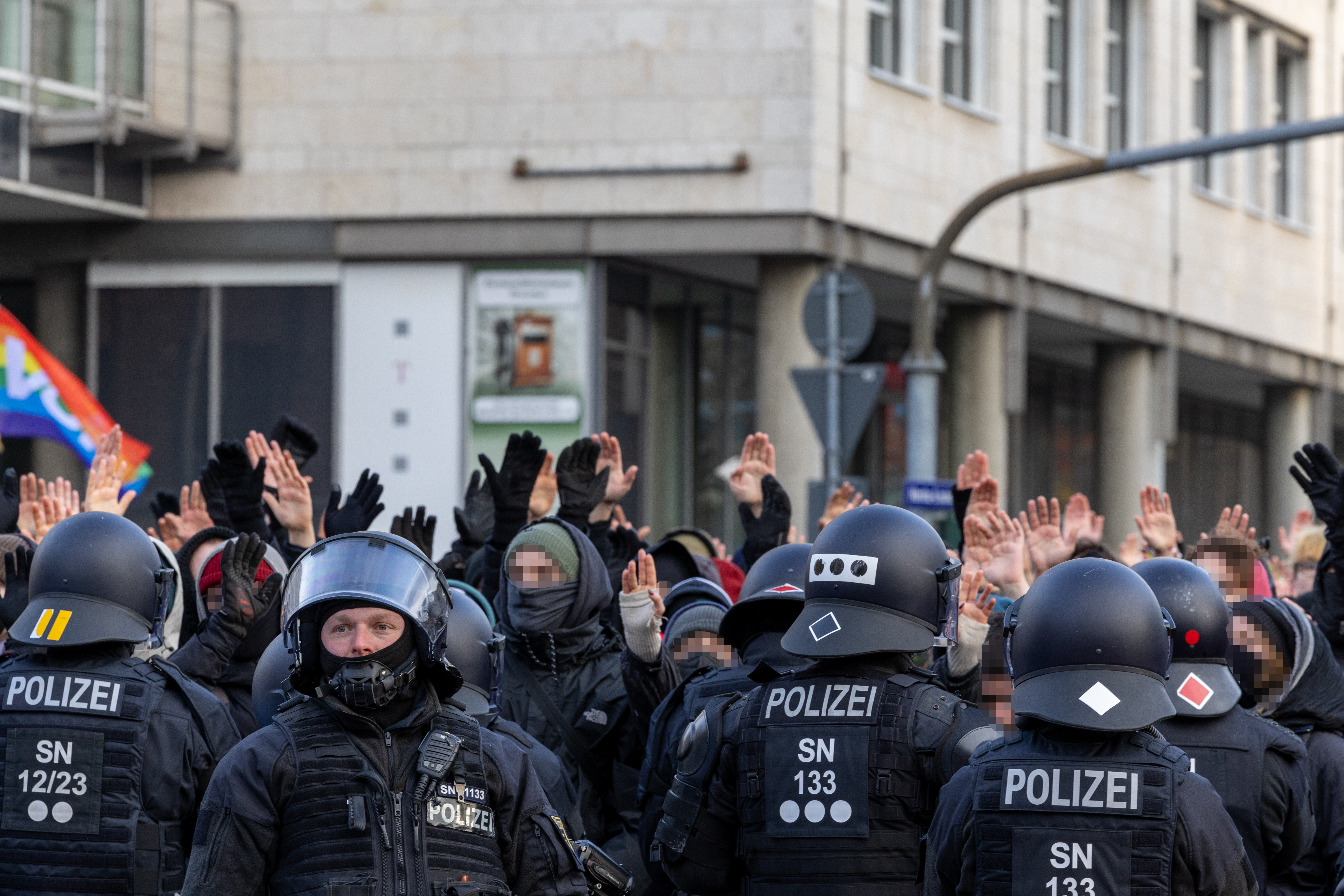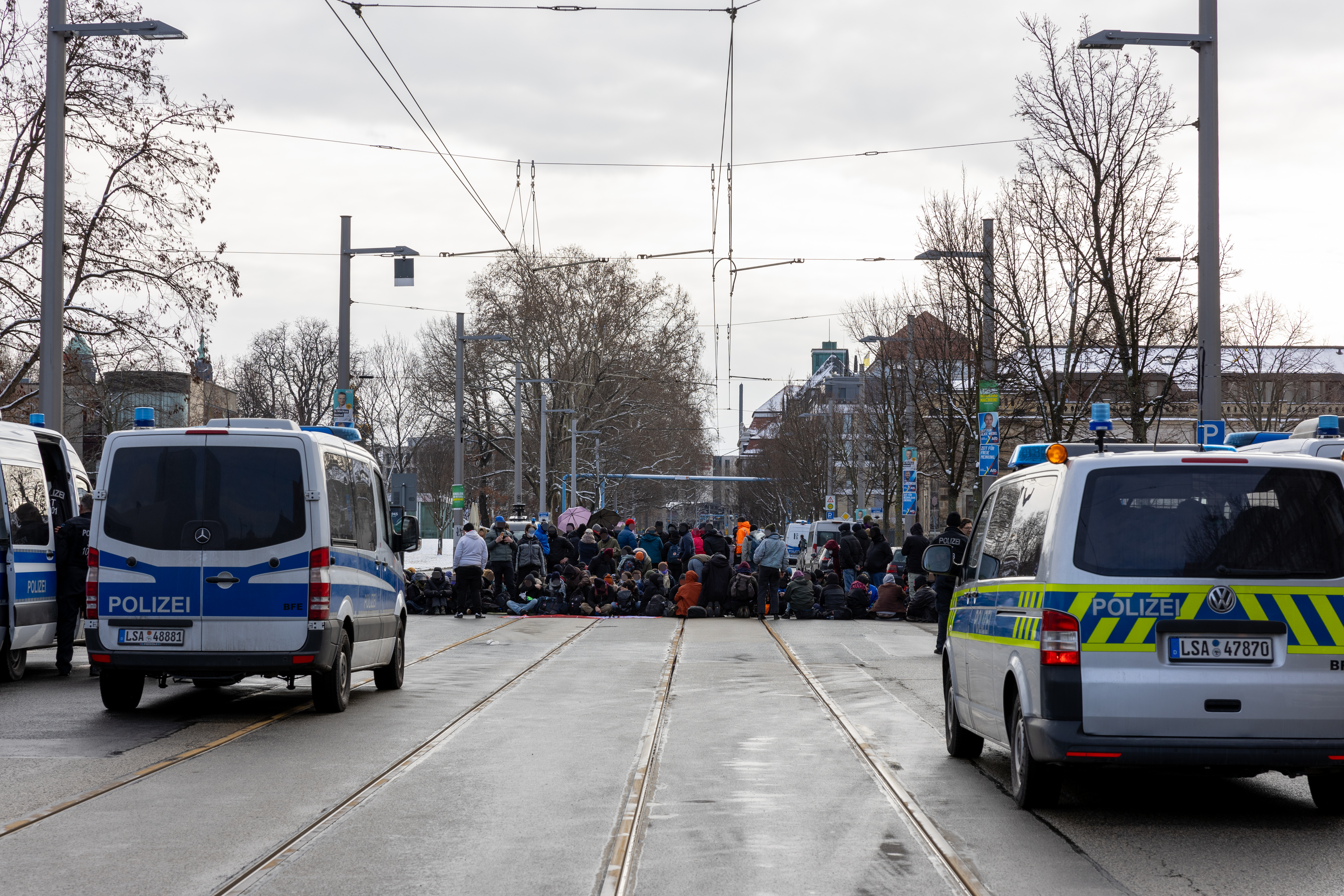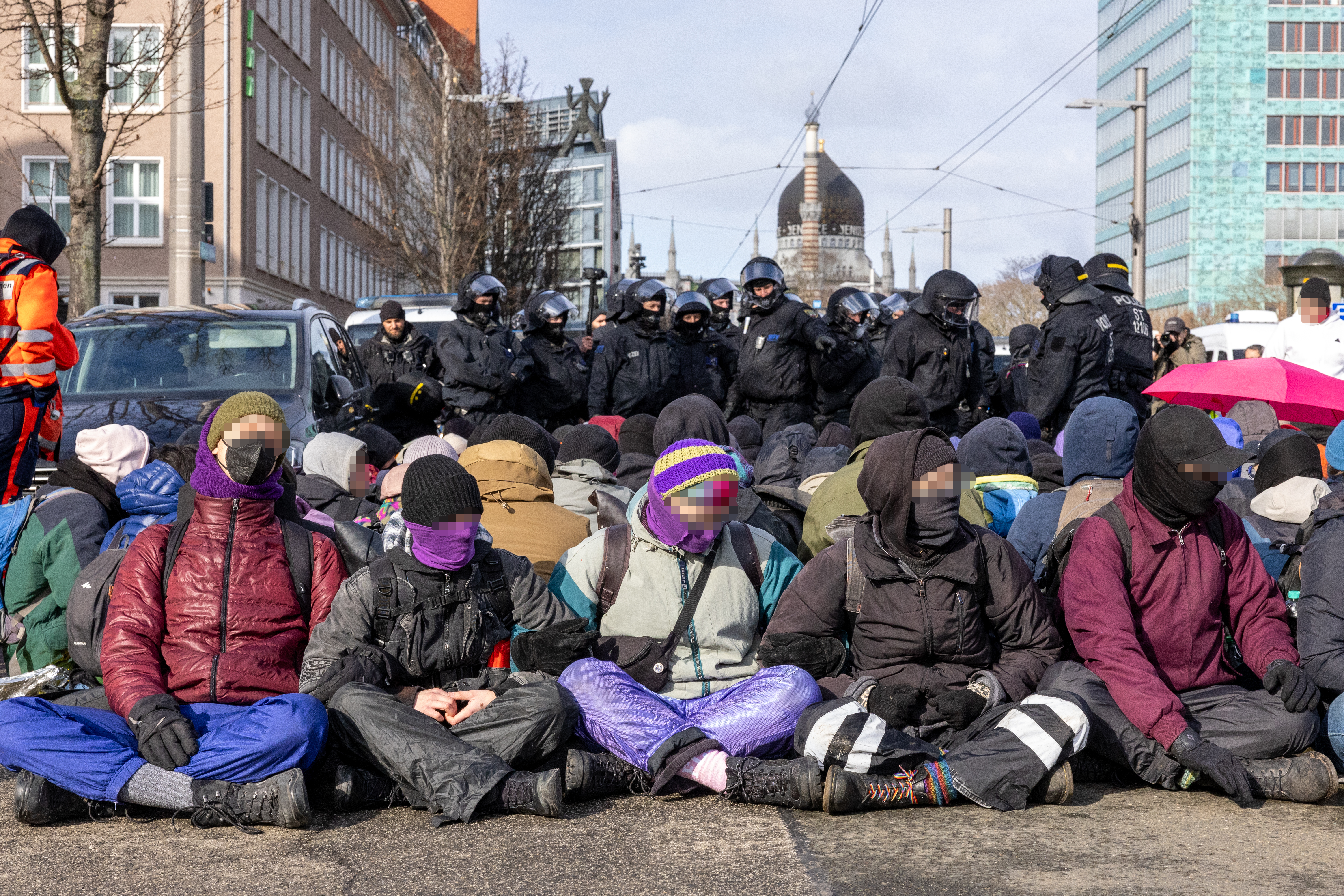 Tausende Antifaschist*innen versuchen den Nazi-Trauermarsch zu Blockieren!