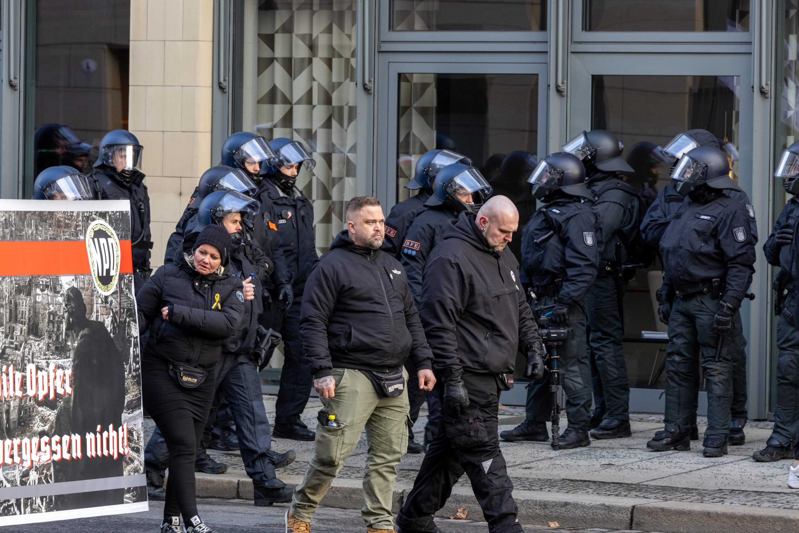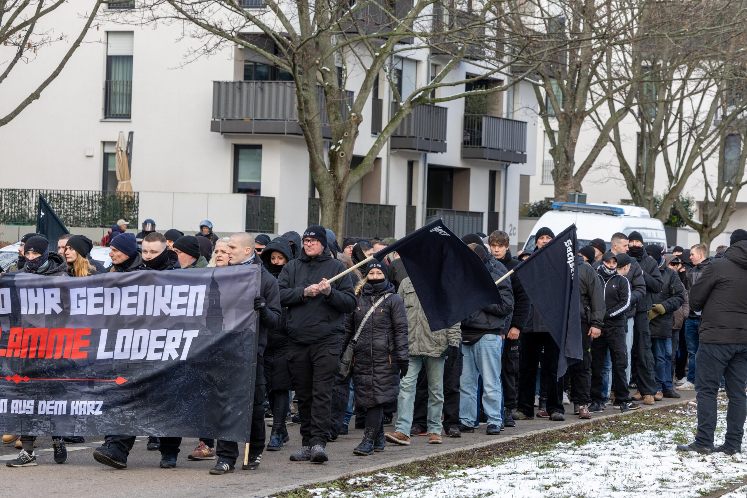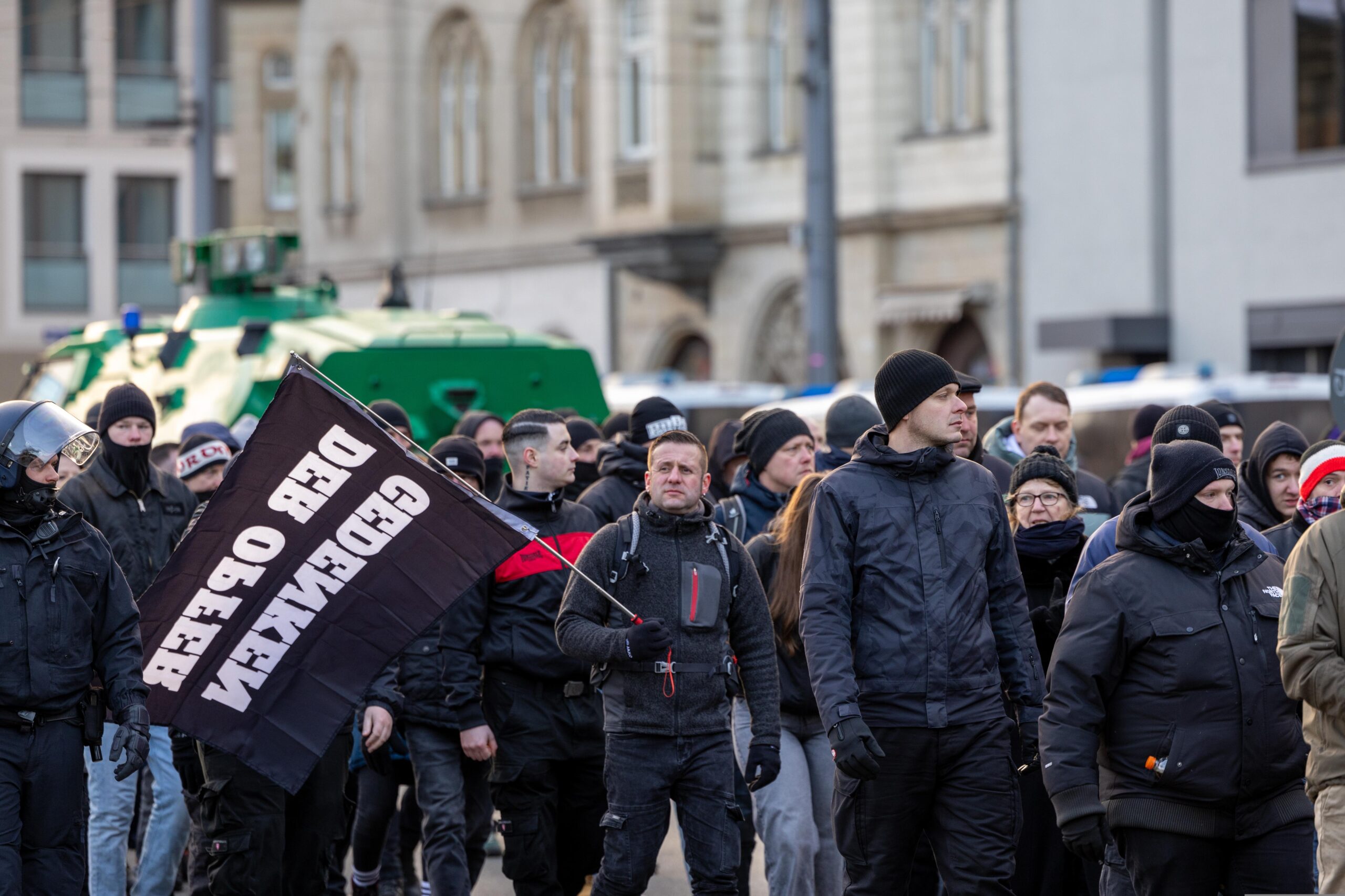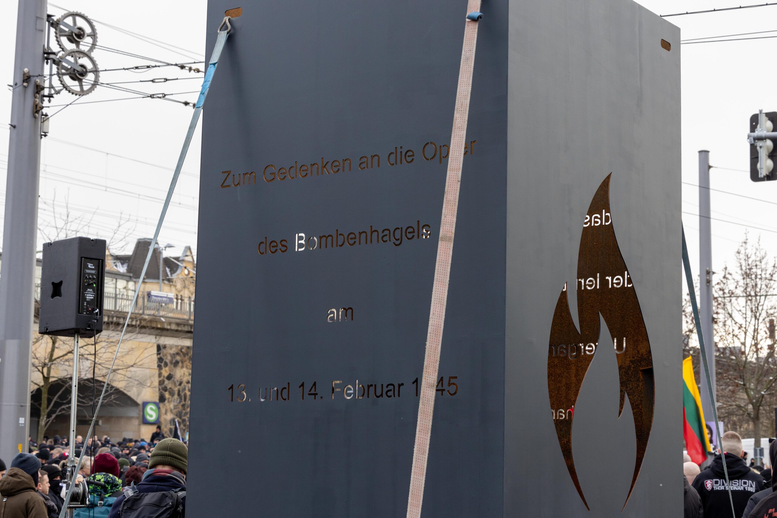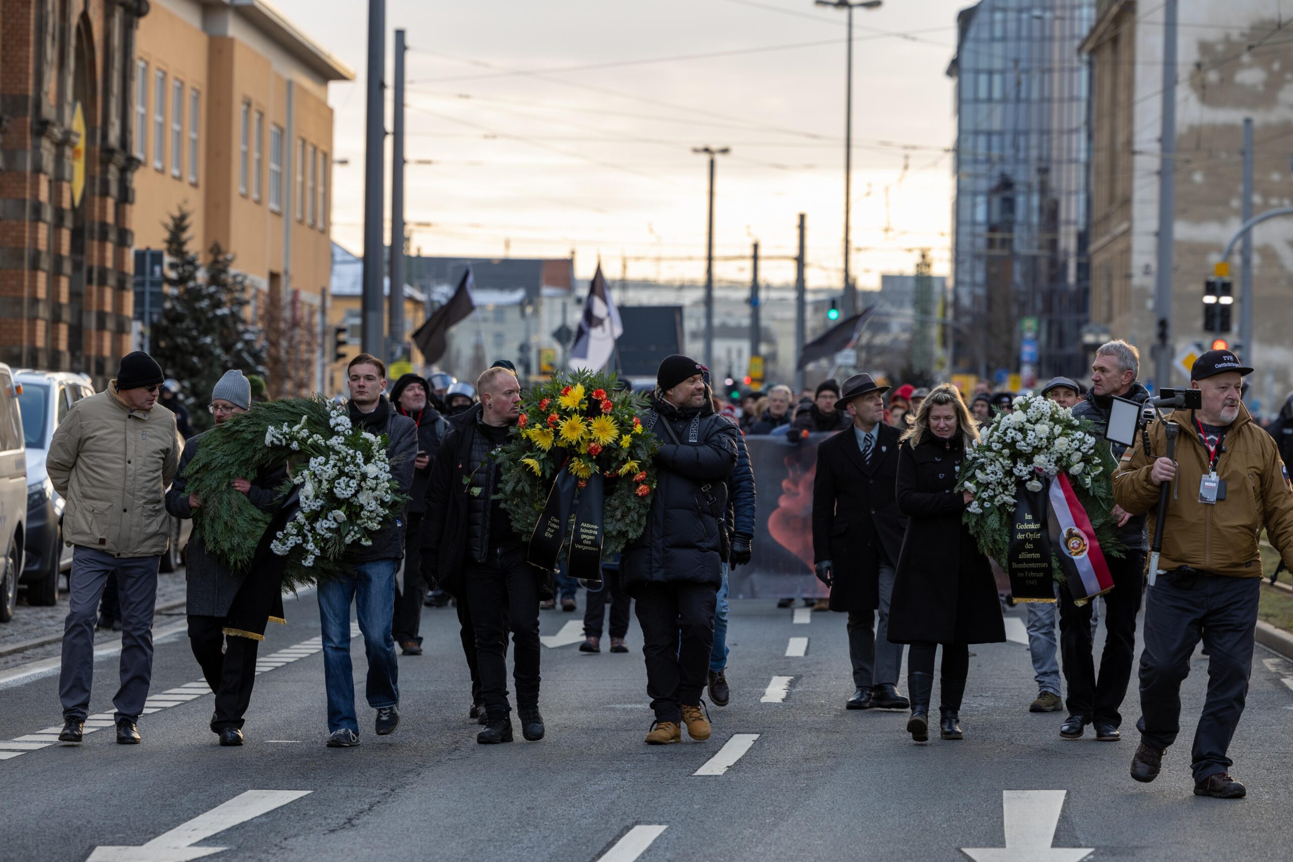 Zum 80. Jahrestag der Bombardierung Dresdens kamen Vertreter von „Die Rechte“, „Die Freien Sachsen“, „Die Heimat“ + deren Jugendorganisation „Junge Nationalisten“. Mitglieder der Active-Club-Szene die im Sommer letzten Jahres zu Störungen von CSD´s aufgerufen haben und bekannte Holocaustleugner!