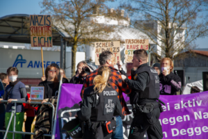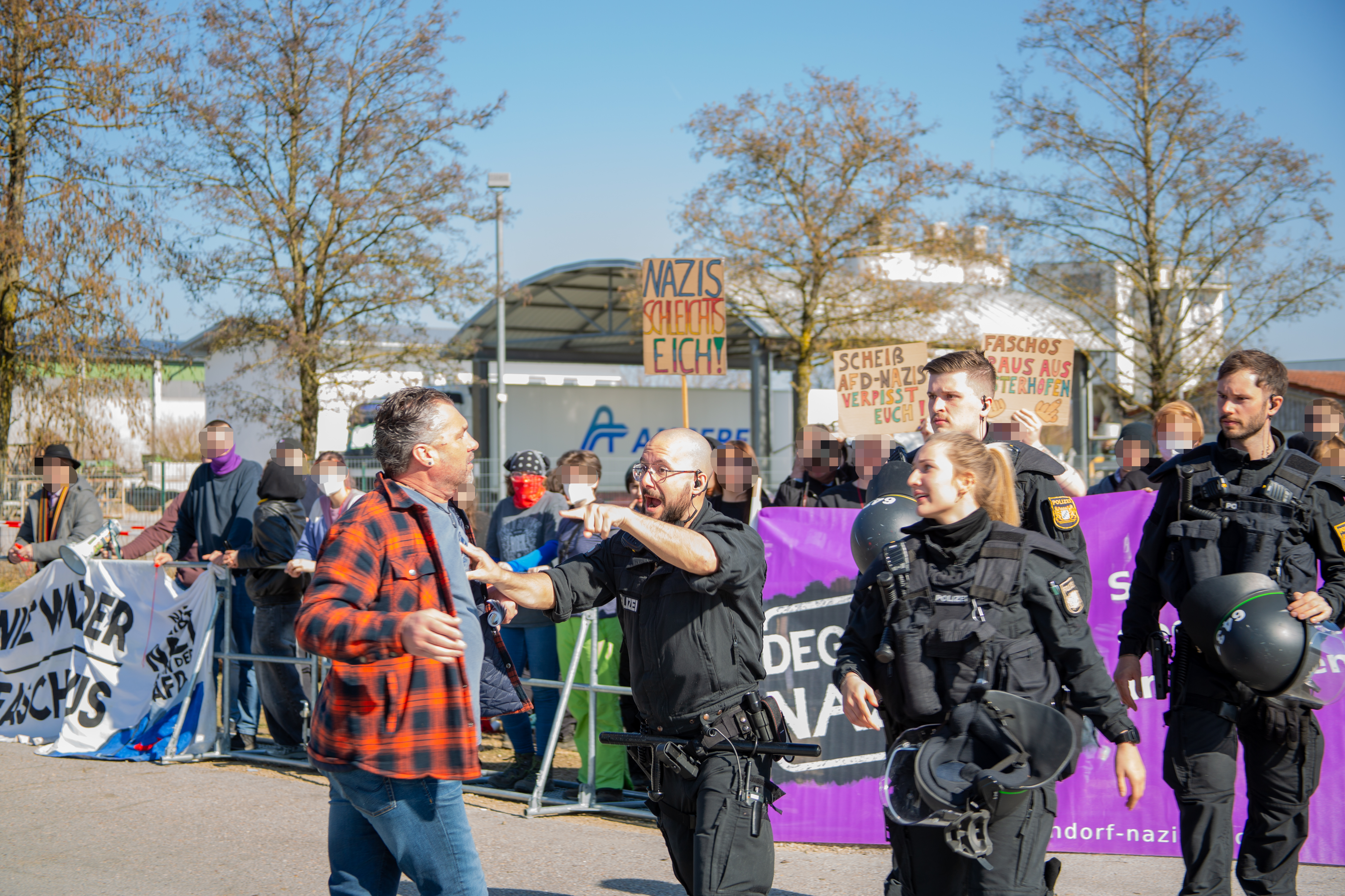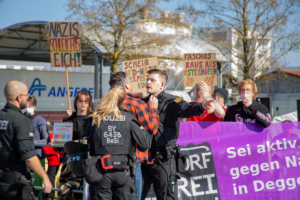 Aufgrund des politischen Aschermittwoch der AfD den die rechtsextreme Partei in Osterhofen, Niederbayern veranstaltete, kam es zu mehreren Protesten. Unter anderem wurde eine Zufahrt von ca. 100 Aktivist*innen blockiert. Weitere Aktivist*innen besetzten ein Tor in der Nähe und erschwerten damit den Zugang zu Parkplätzen für Rechte.