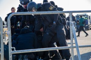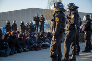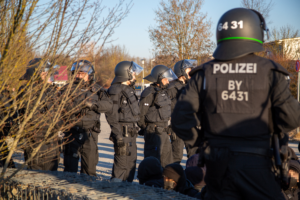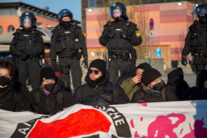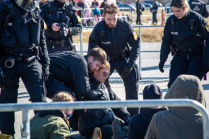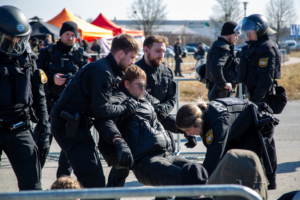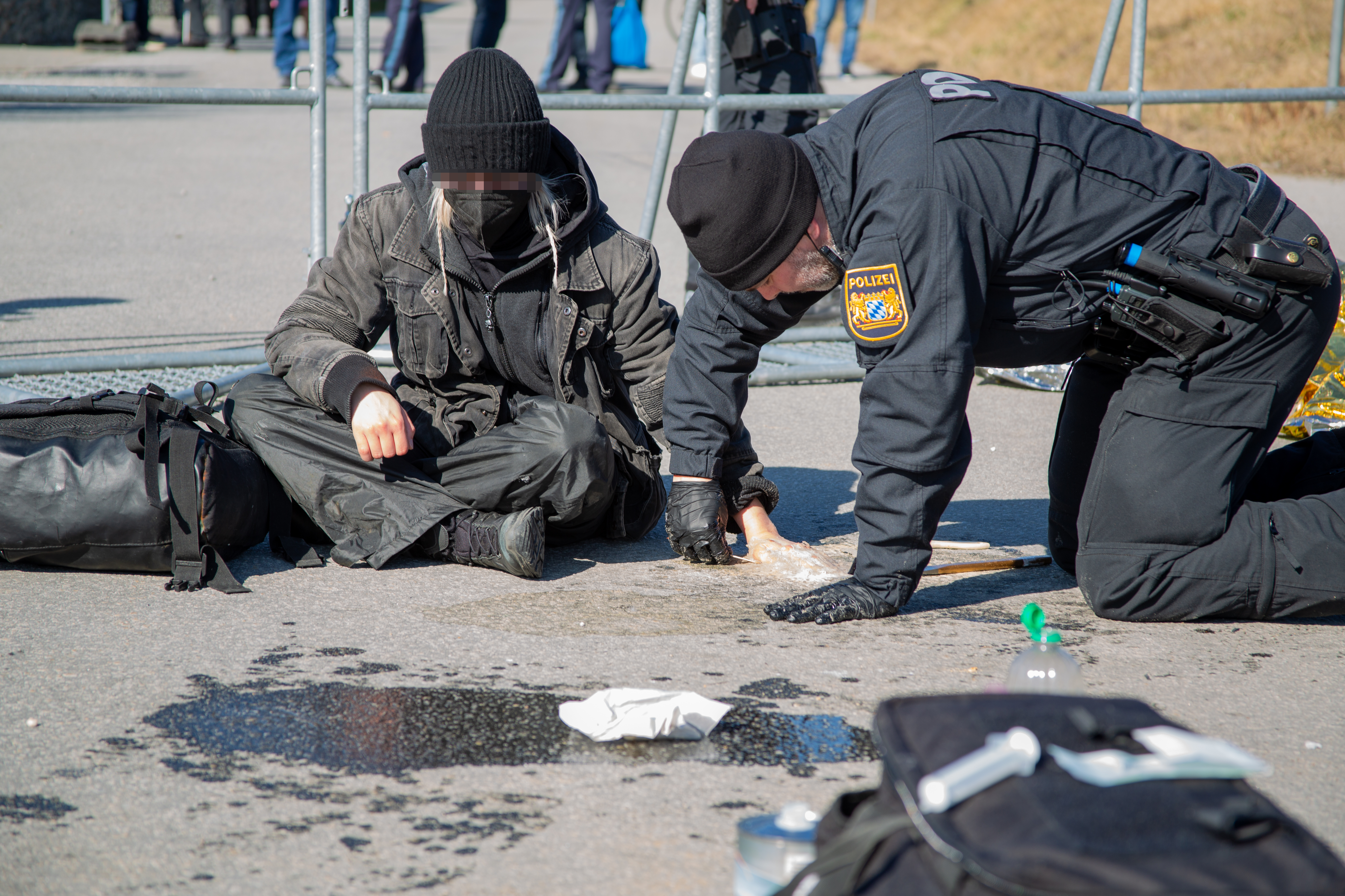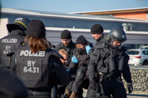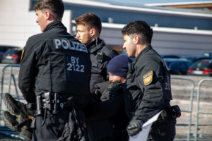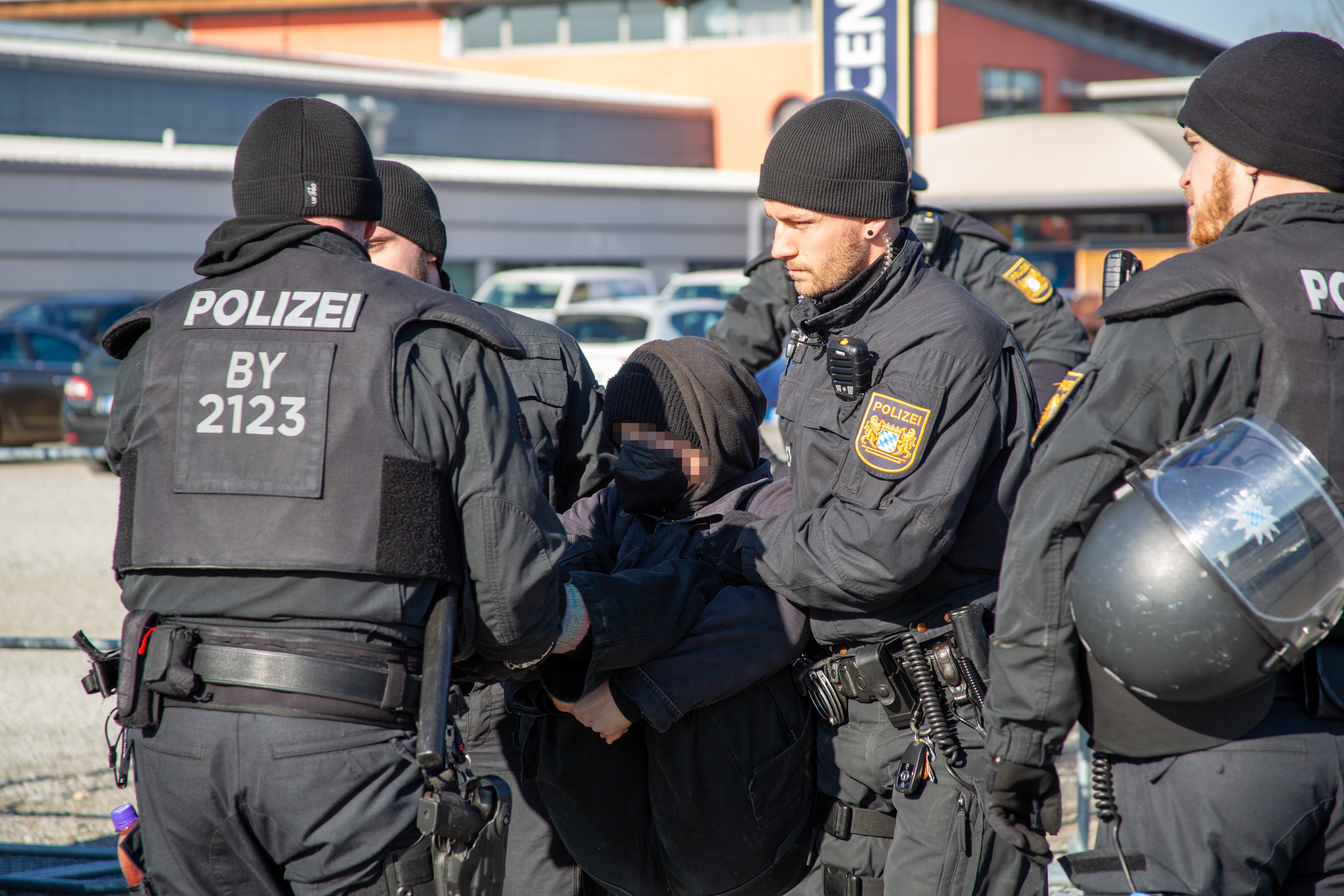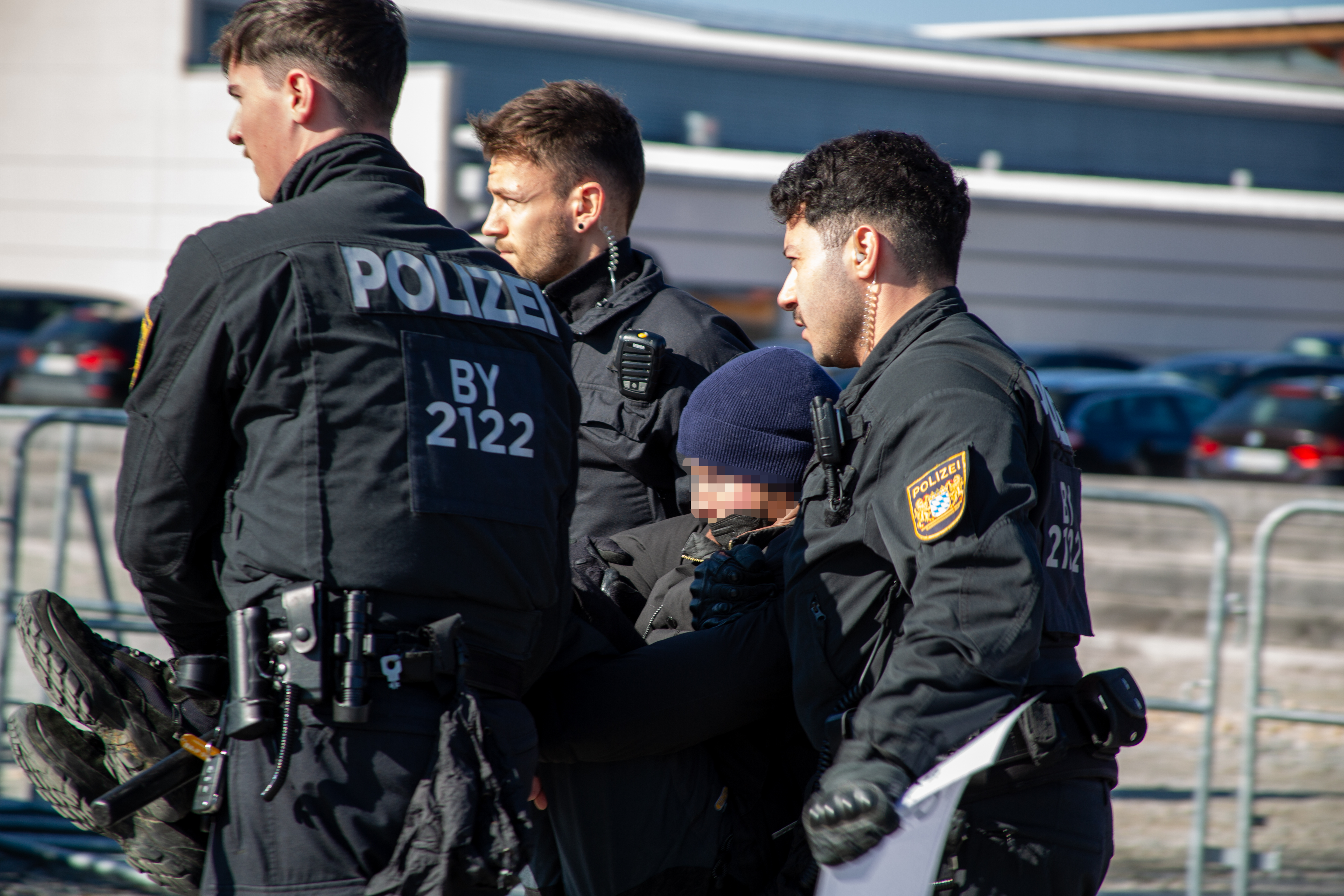 Auch wenn die Polizei keine Schmerzgriffe o.ä. anwandt ist es erschreckend, wie groß das Aufgebot an Polizeikräften war um Faschisten ihren Aufstieg in Bayern zu ermöglichen.